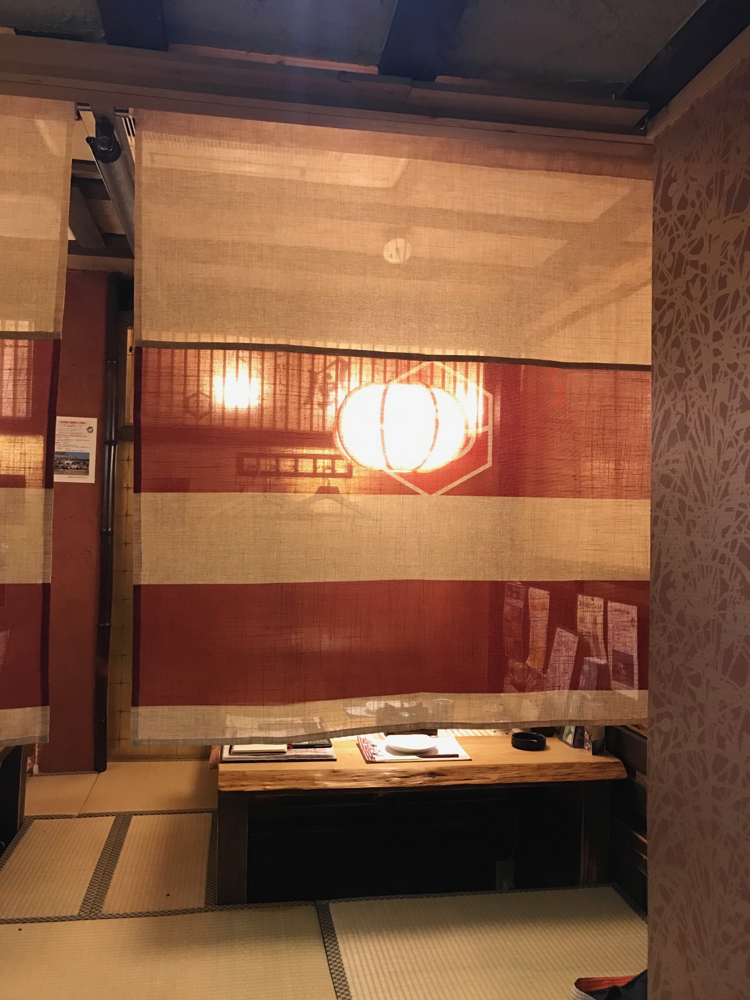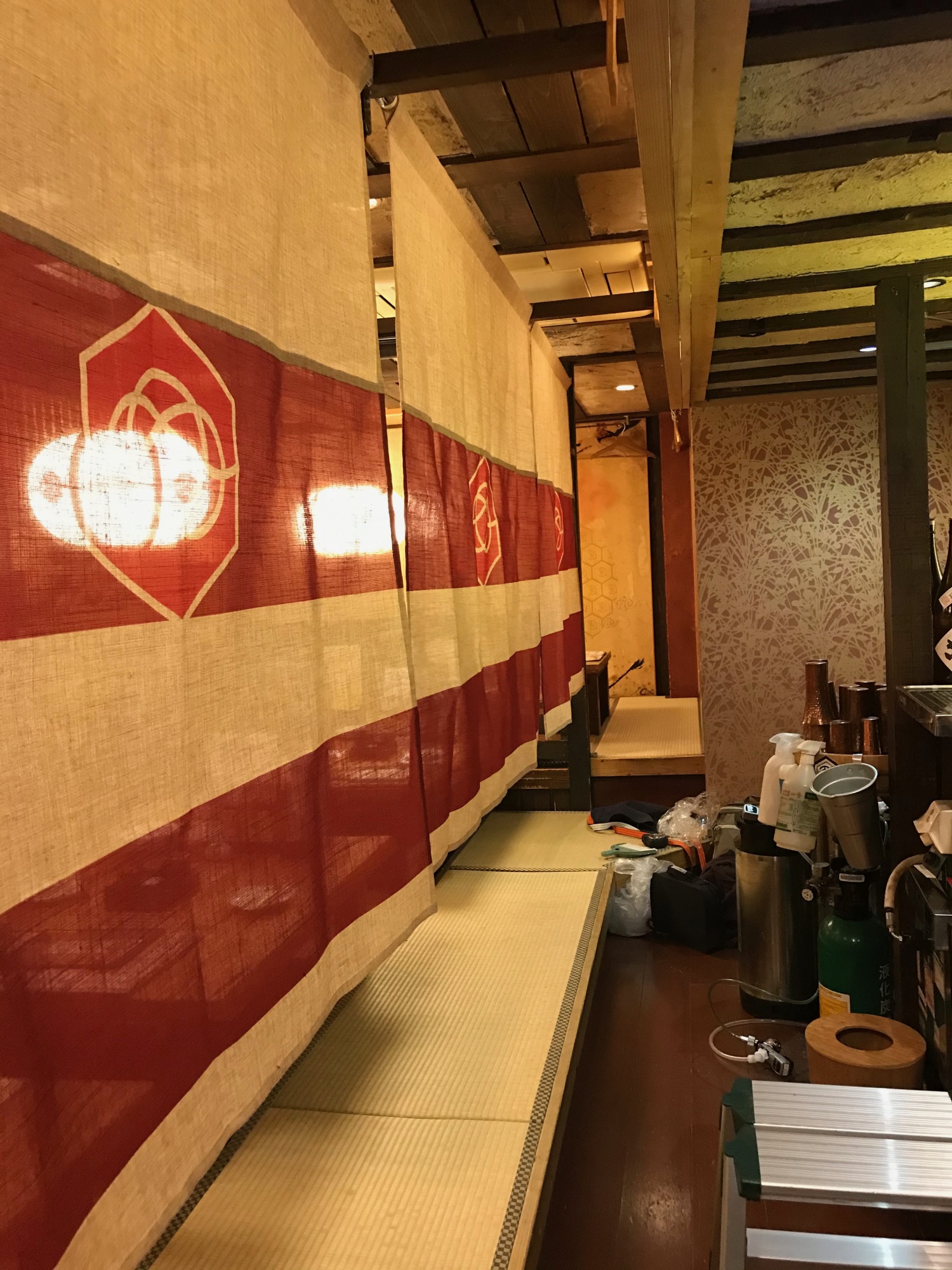 いつもお世話になっております「おるげんと下通り本店」樣。 ありがとうございます! 2階の間仕切り暖簾を作成し取り付けに行ってまいりました。 この透け具合が良いですね〜〜〜〜。 下通り本店と駕町通り店、美味しい料理とお酒を堪能しに行きたーい!!!! 皆様もぜひ!