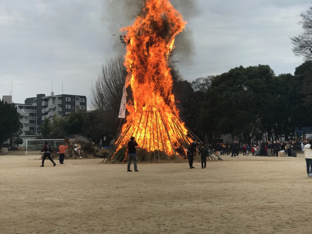 年始に入り1月11日 健軍小学校にて恒例の「どんどや」!