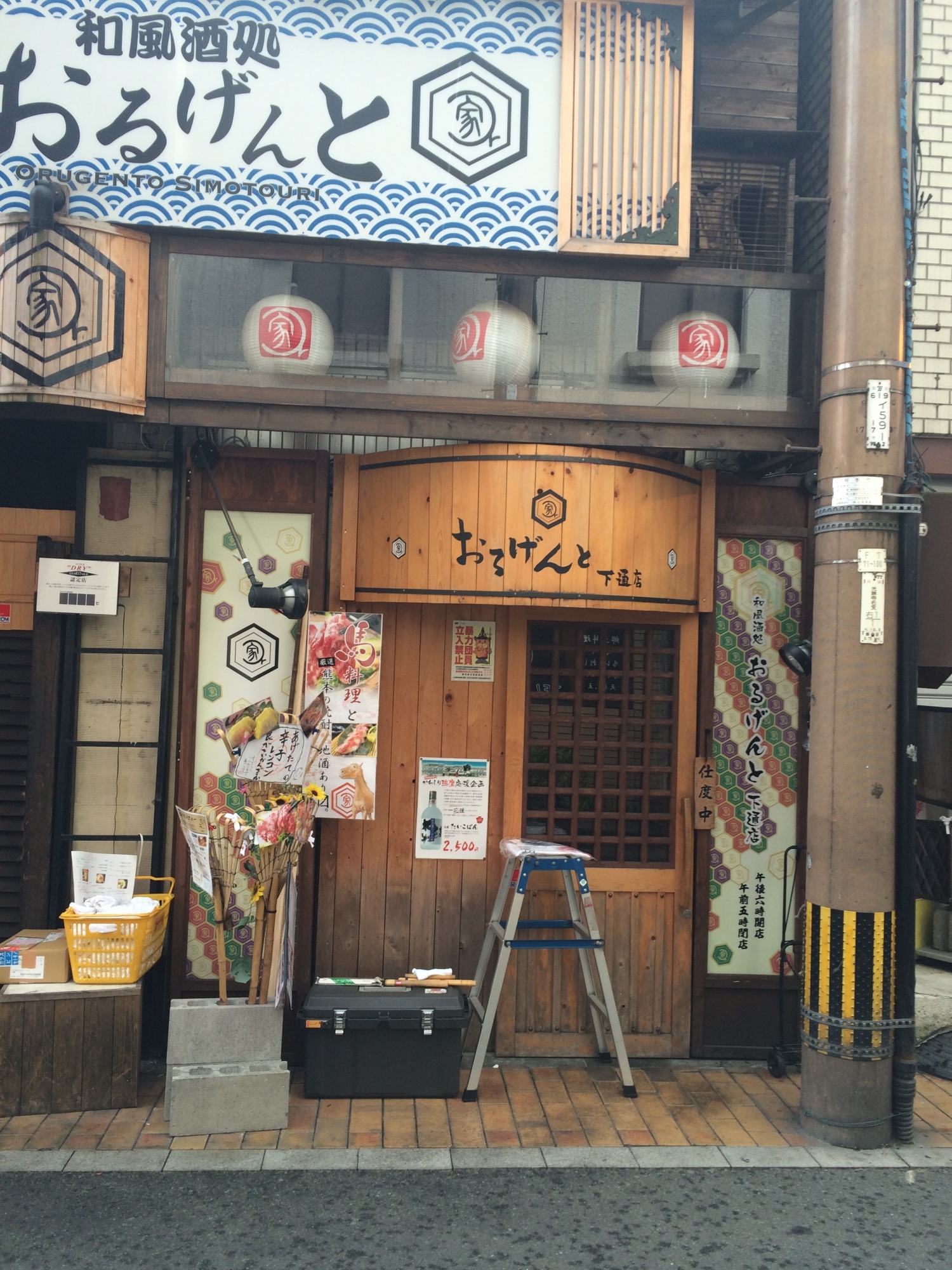 昨日、「おるげんと 下通り店」様の[のれん]設置に行ってきました。