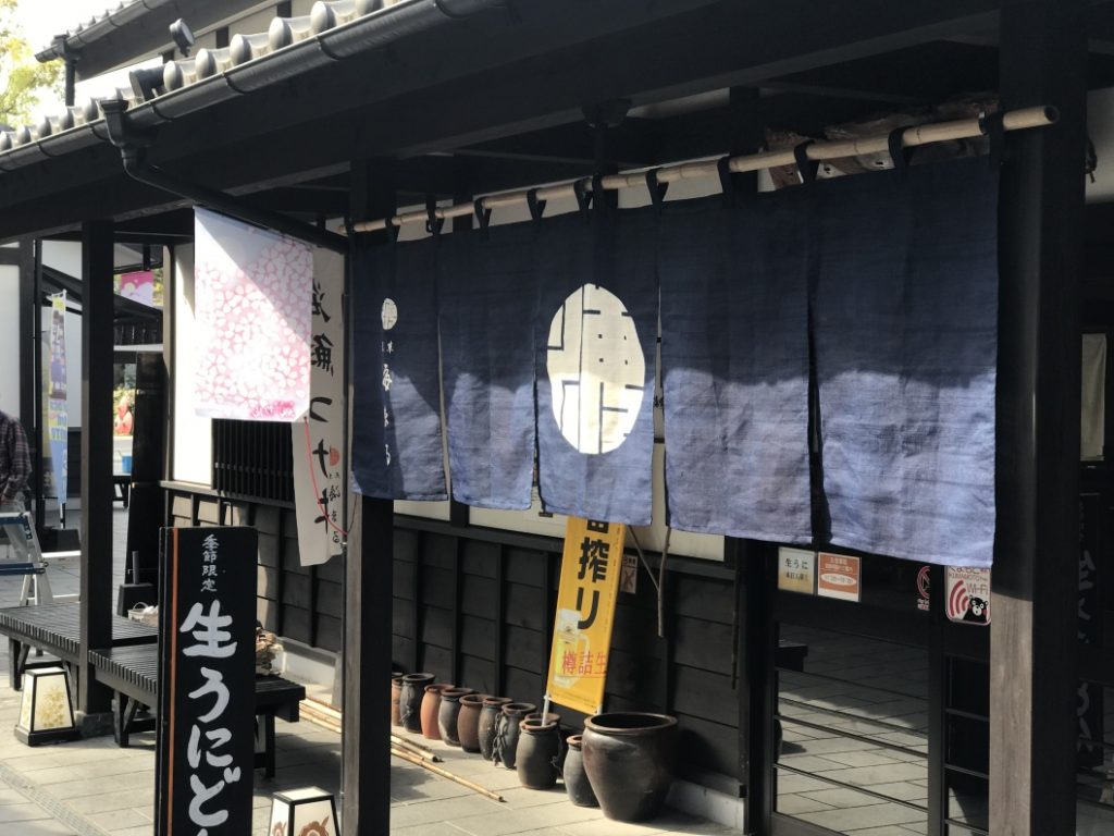 熊本城下の「城彩苑 海まる」様の「のれん」と「行灯看板」文字張替えのお仕事です!