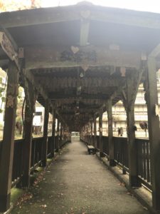 川の上に橋があり、絵馬に願い事を書いた後ぶら下げるんでしょうね。
